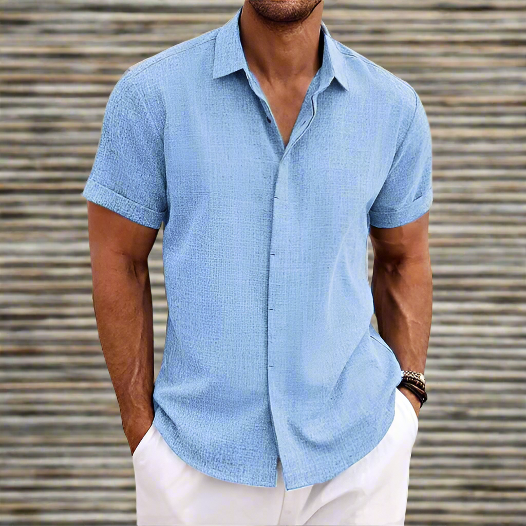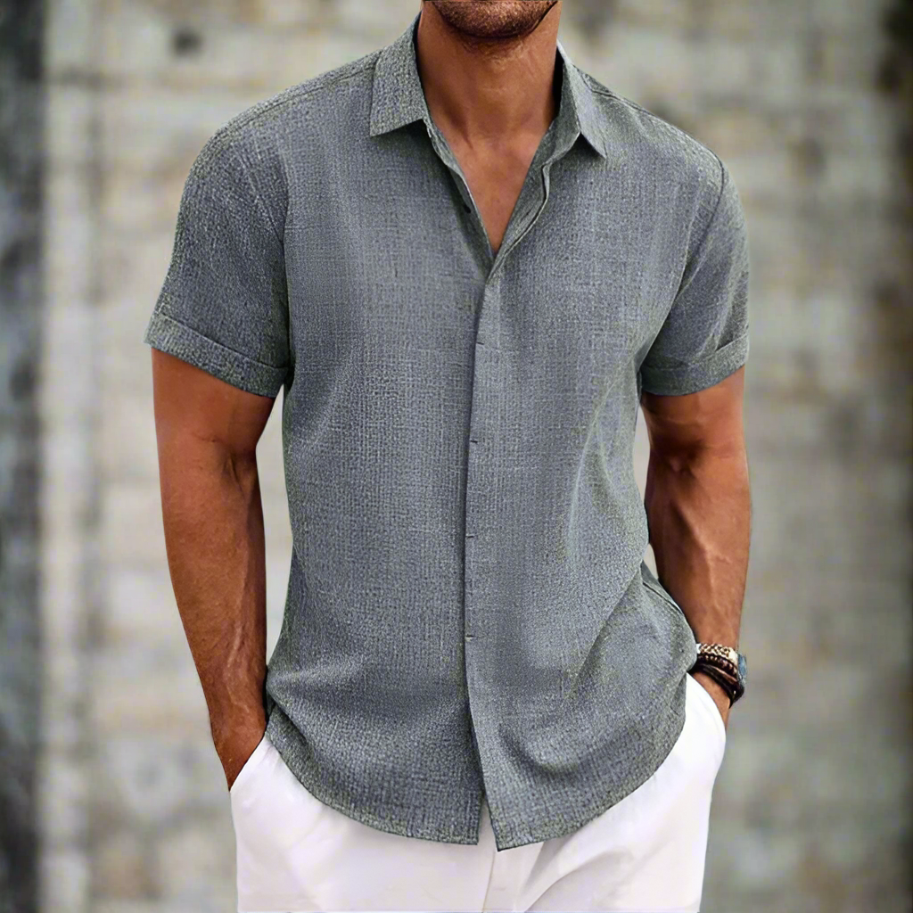 Upptäck herrskjorta kort ärm – avslappnad passform – andningsbart material – casual knäppning. Denna bekväma herrskjorta med kort ärm och avslappnad passform är perfekt för varmt väder. Tillverkad av andningsbart material för ultimat komfort och en avslappnad look. Idealisk för sommardagar!