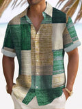 Herr Skjorta Kort Ärm – Avslappnad Passform – Linne Bomull – Patchwork Design
