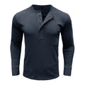 Herr Skjorta Lång Ärm – Normal Passform – Henley Hals – Mjuk Bomullsblandning Avslappnad