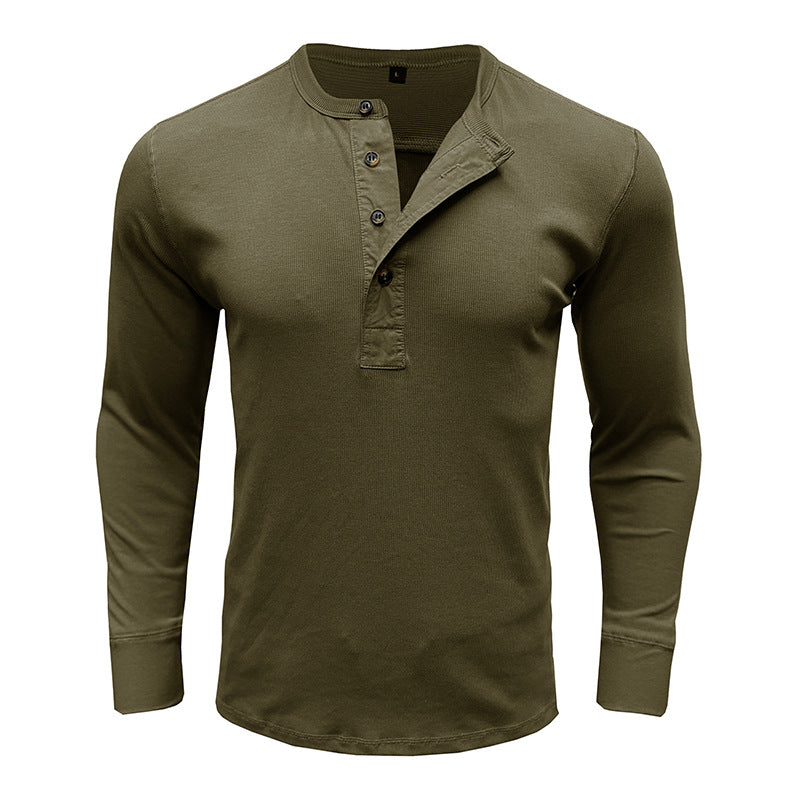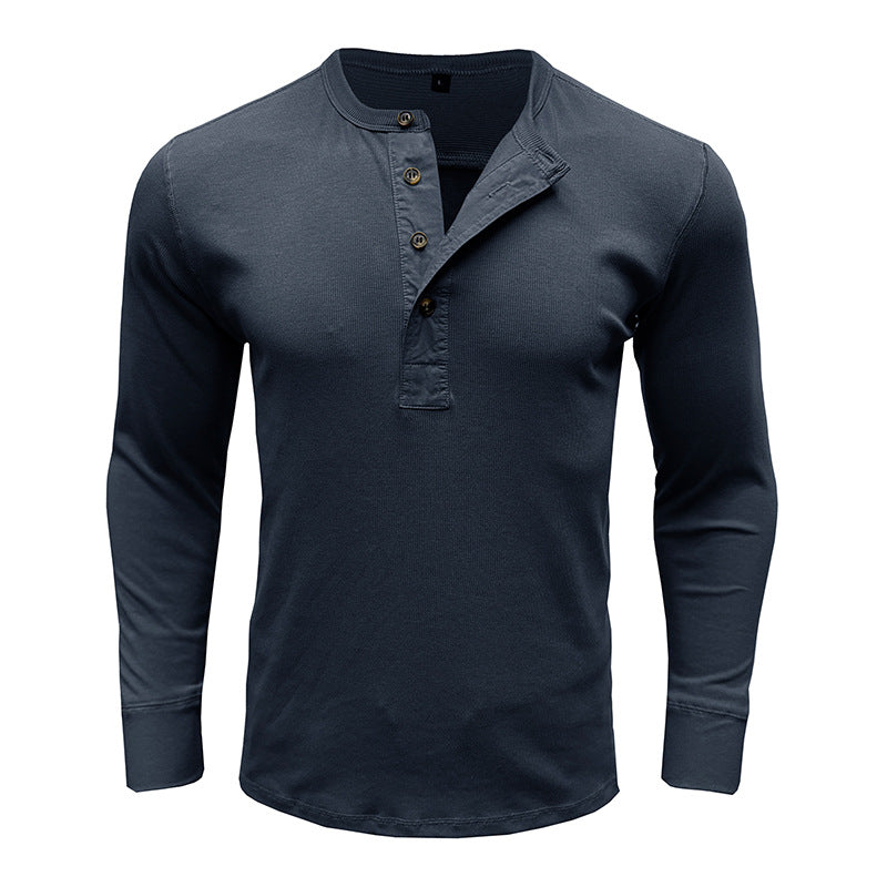 - Ontwerp: Henley-krage, lång ärm, regular passform