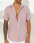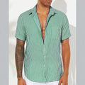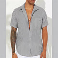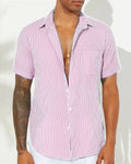 Herrskjorta – Relaxed Passform – Kort Ärm – Vertikala Ränder – Andningsbar Skjorta