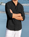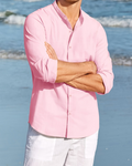 Herrskjorta – Avslappnad Passform – Naturliga Tyger – Mandarinkrage – Lång Ärm