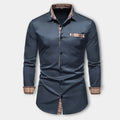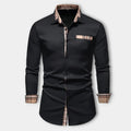 Herr Skjorta – Slim Passform – Andningsbart Tyg – Kontrast Rutdetaljer