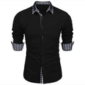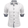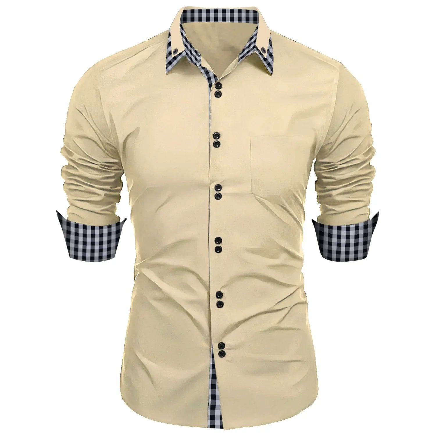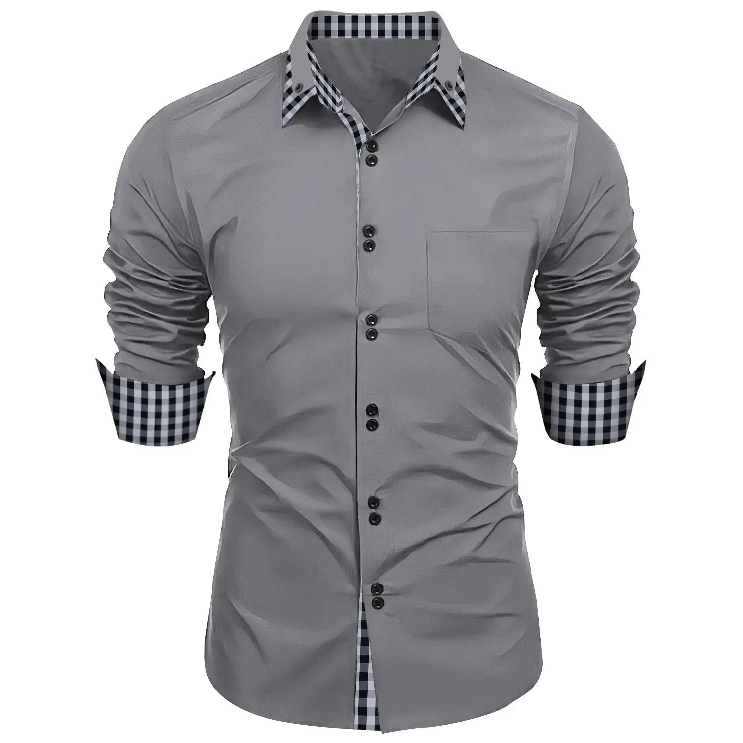 Herr Skjorta – Slim Fit – Bomullsblandning – Rutig Kontrast Krage och Manschetter – Bröstficka