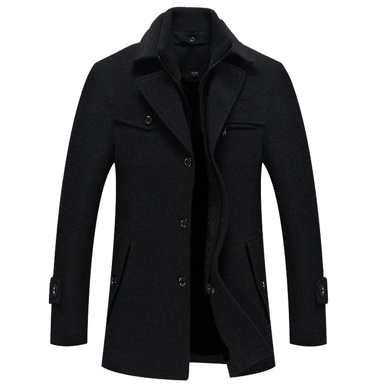 Herrkappa – Skräddarsydd Passform – Ullmix – Hög Krage – Dubbelradig Knäppning – Mellanlång