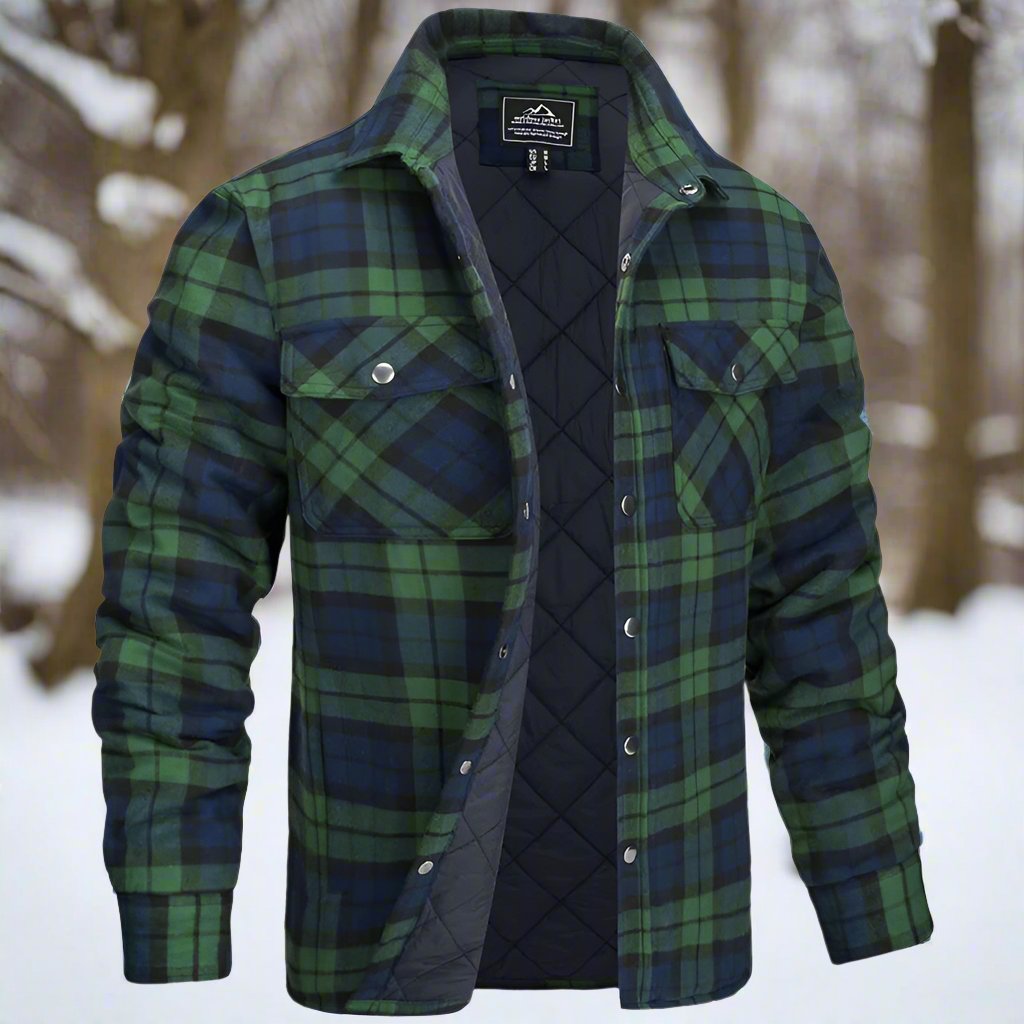 Herr Overshirt Jacka – Vadderad Flanell – Avslappnad Passform – Tryckknappsstängning – Bröstfickor