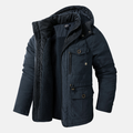 Herr Parka - Vävt Tyg - Normal Passform - Mellanlång - Huva Med Krage