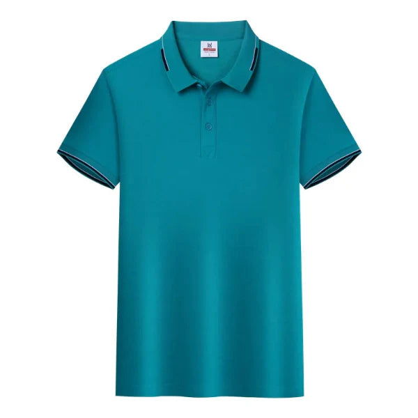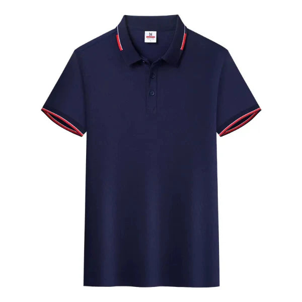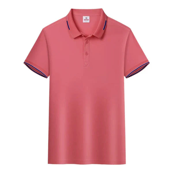 Herr Pikétröja – Bomullsblandning – Normal Passform – Ribbad Krage – Korta Ärmar