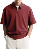 Herr Pikétröja – Bomullsblandning – Avslappnad Passform – Dragkedja – Kort Ärm Ledig
