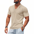 Herr Pikétröja – Ledig Passform – V-Ringning – Andningsbar Komfort – Avslappnad Minimalistisk Stil