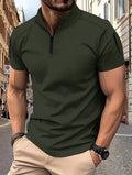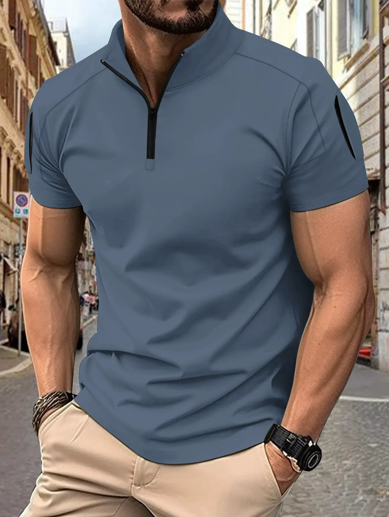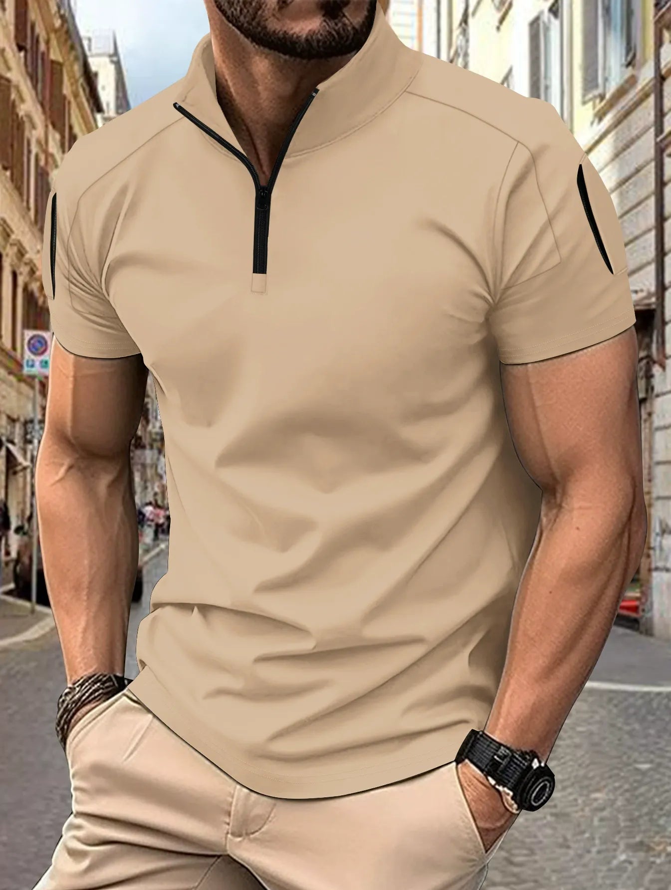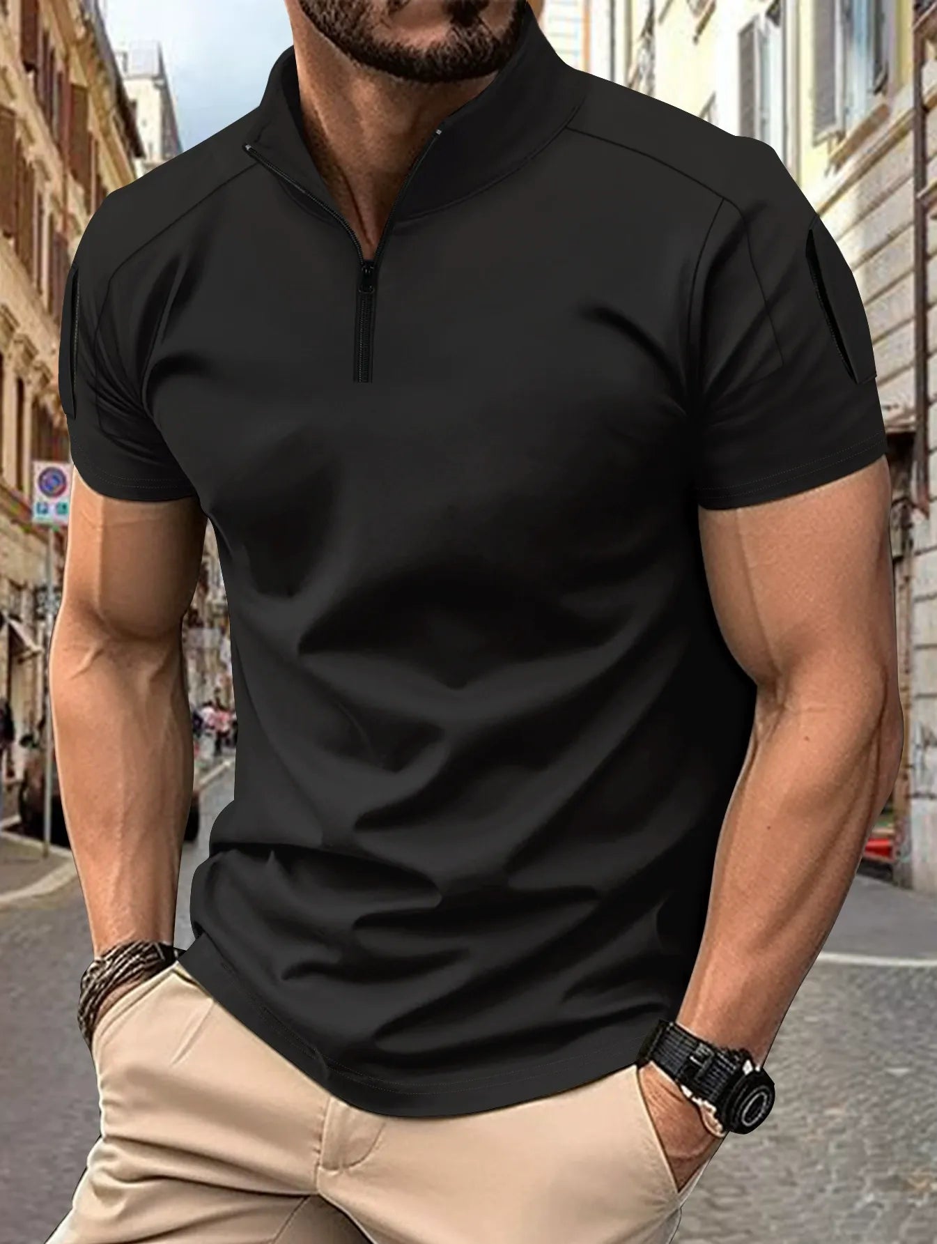 Herr polotröja – Slim passform – Andningsbar bomull – Taktiska ärmfickor – Dragkedjekrage