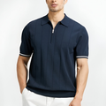 Herr Pikétröja – Slim Fit – Dragkedja – Lyxigt Mjukt Stickat – Ribbstickade Kanter