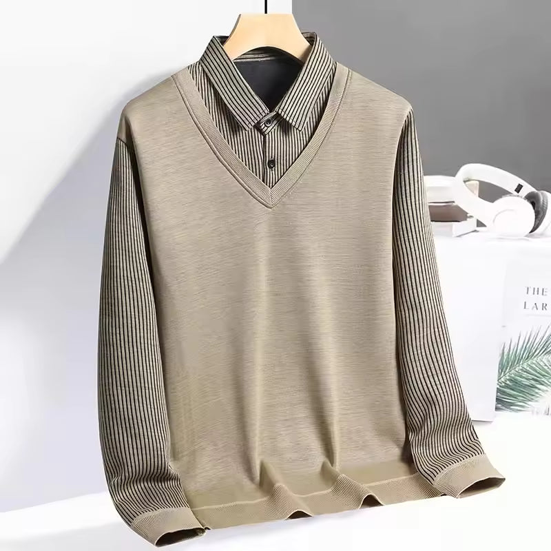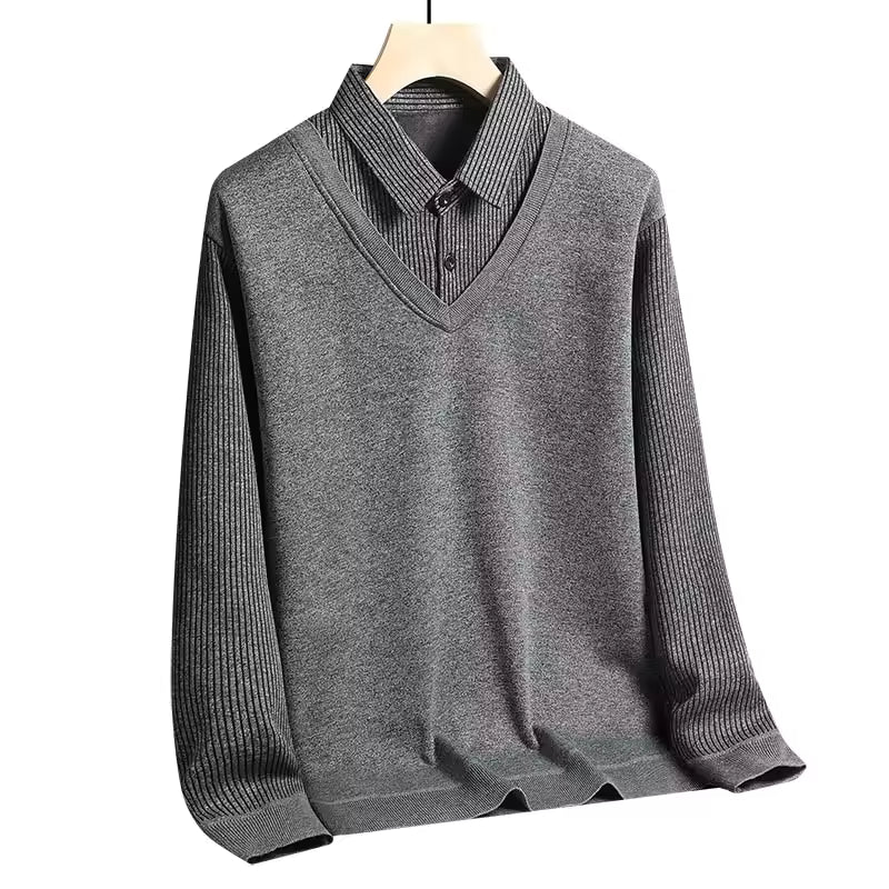 Herr polo sweatshirt – Normal passform – Stickad – Lång ärm – Business casual-look