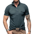 Herr polotröja – Smal passform – Bomull – Stående krage – Bröstficka med knapp