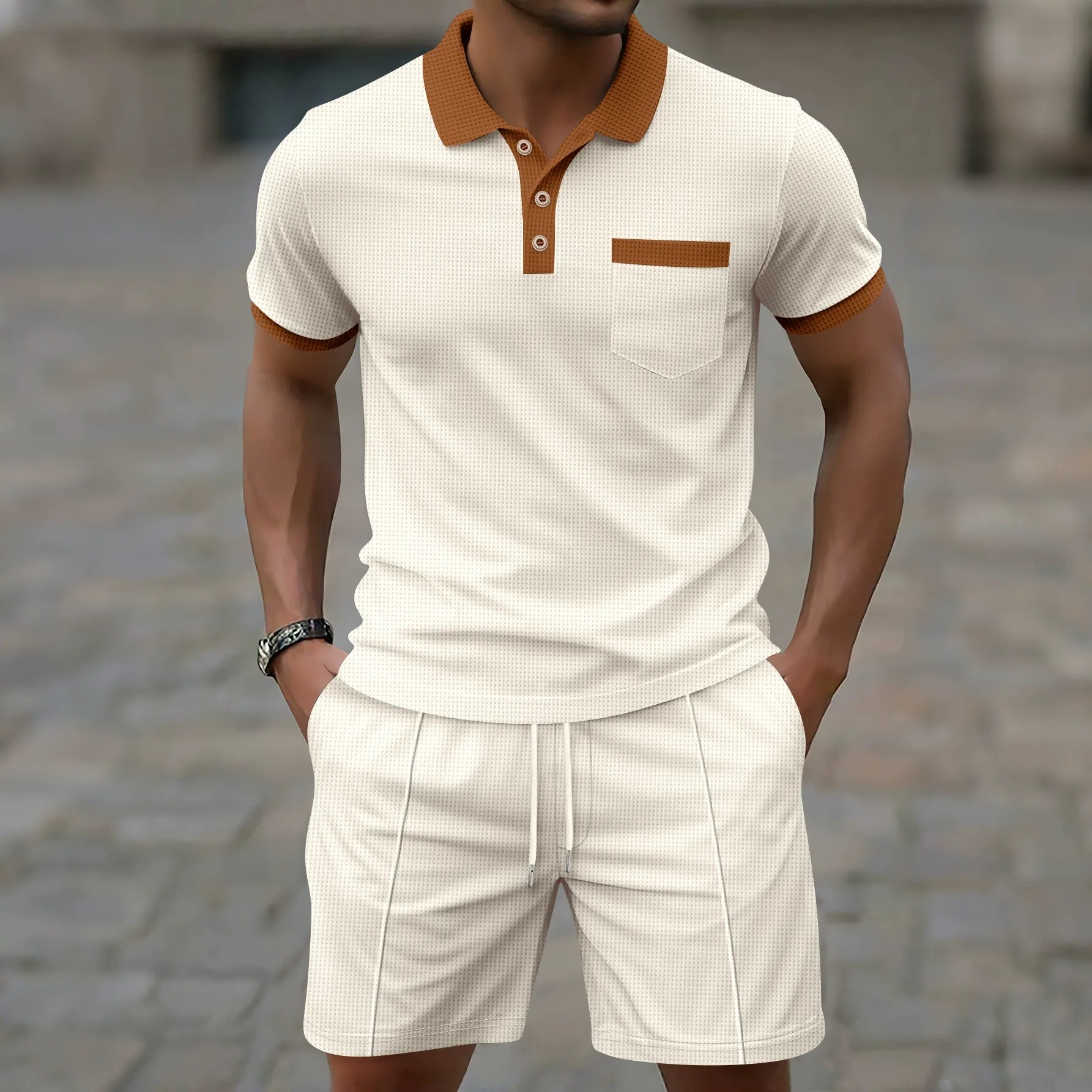 Kombinera detta set med vita sneakers för en modern, casual look, eller bär polon lös för en avslappnad känsla. Perfekt för en stilfull, bekväm dag.
