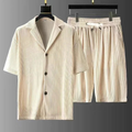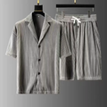 Herrar Set Polo och Shorts – Avslappnad Passform – Ribbadstruktur – Andningsbart Naturmaterial