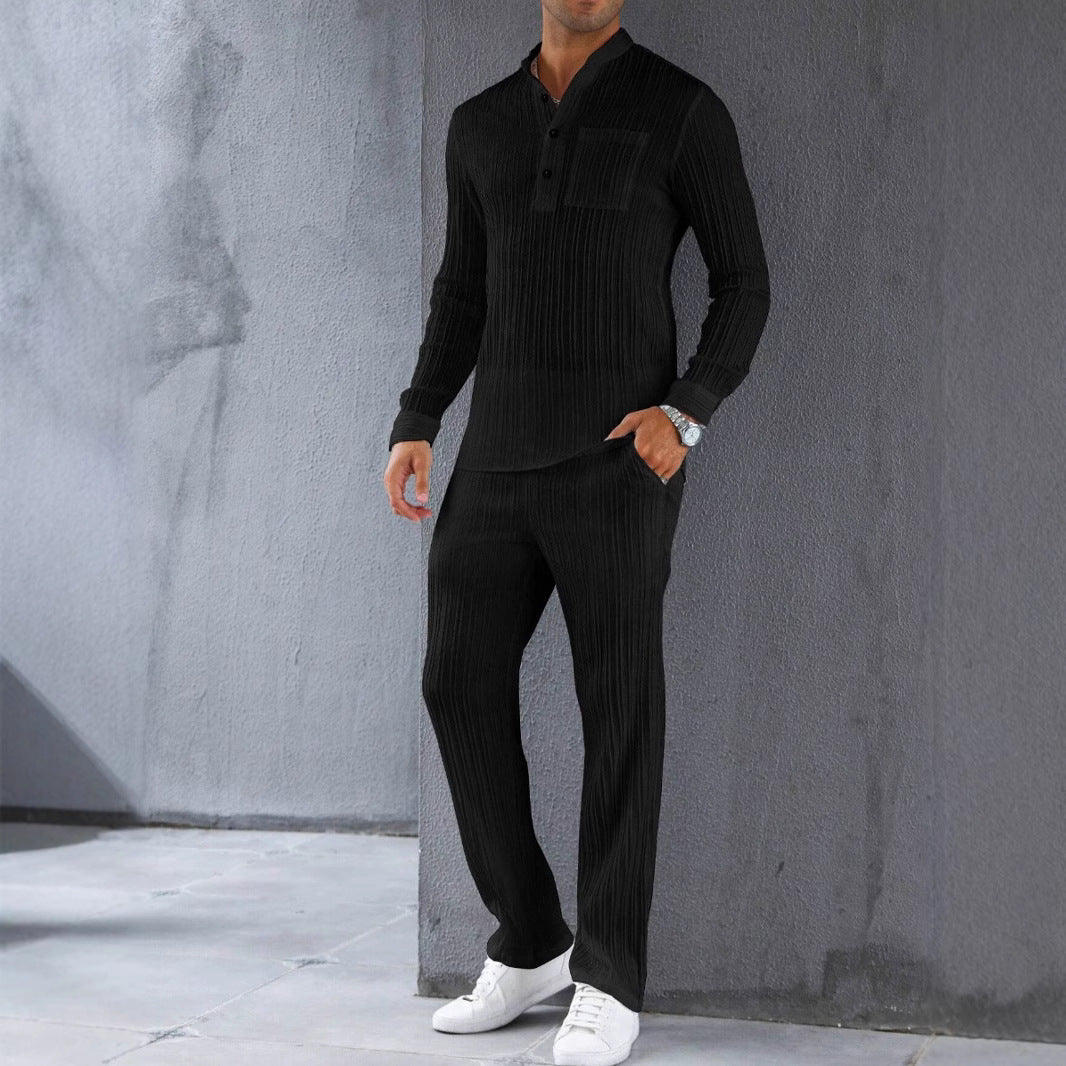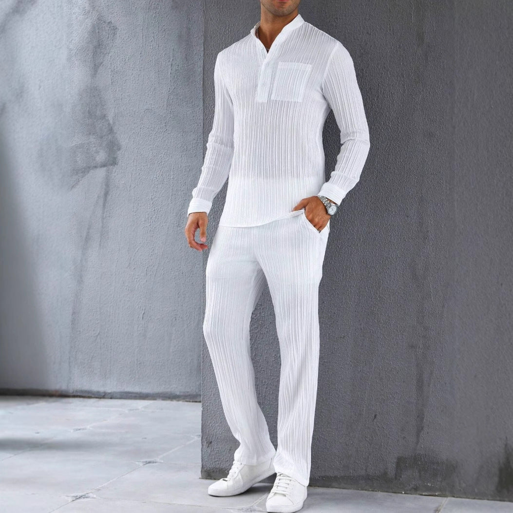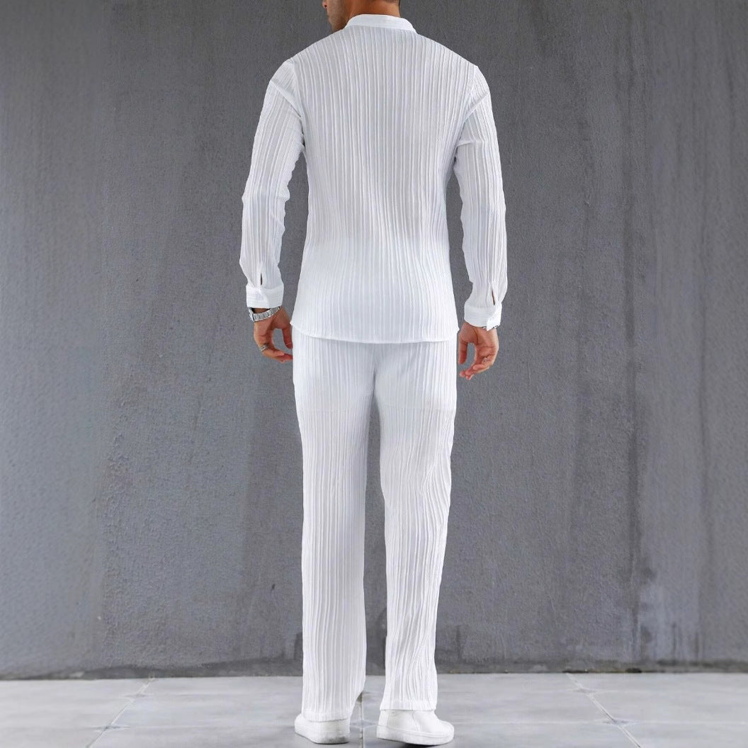 Herr Set Skjorta och Byxor – Slim Passform – Ribbadstruktur – Andningsbar Lättvikt Design