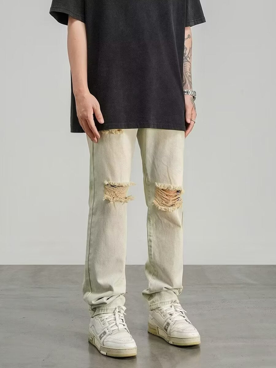 Upptäck Herr Slim Fit Jeans – Raka Ben – Full Längd – Slitna Streetwearstil från Amstel-Mode. Dessa trendiga jeans kombinerar en strömlinjeformad passform med robusta slitna detaljer, perfekt för en tuff streetwear-look. Bekväma och stilfulla för varje dag.