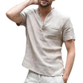 Herr T-shirt – Avslappnad Passform – Naturliga Tyger – Kort Ärm – Knäppning – Bröstficka