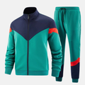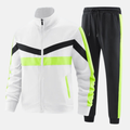 - Ontwerp: Slim Fit, Full Zip Jas met Hoge Kraag, Joggingbroek met trekkoord en contrasterende zijpanelen