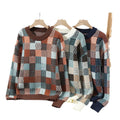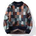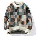 Deze herentrui is vervaardigd uit een gebreide stof met textuur en heeft een relaxte pasvorm. Het ontwerp kenmerkt zich door een dambord patchworkpatroon.