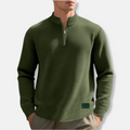 Denna herrtröja är tillverkad av en bomullsblandning i våffelstickat tyg och har normal passform. Kragen med dragkedja ger justerbart skydd.