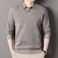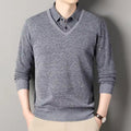 Herr Tröja – Klassisk Passform – V-ringning Polo Krage – Mjukt Stickat Tyg