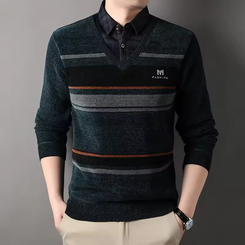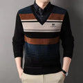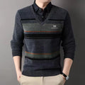 Herr Tröja – Regular Passform – Fleeceblandning – V-Ringning – Randigt Stickat – Logotyp Detalj