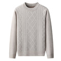 Herr Tröja – Regular Passform – Kabelstickad – Rund Hals – Mjuk Ullmix