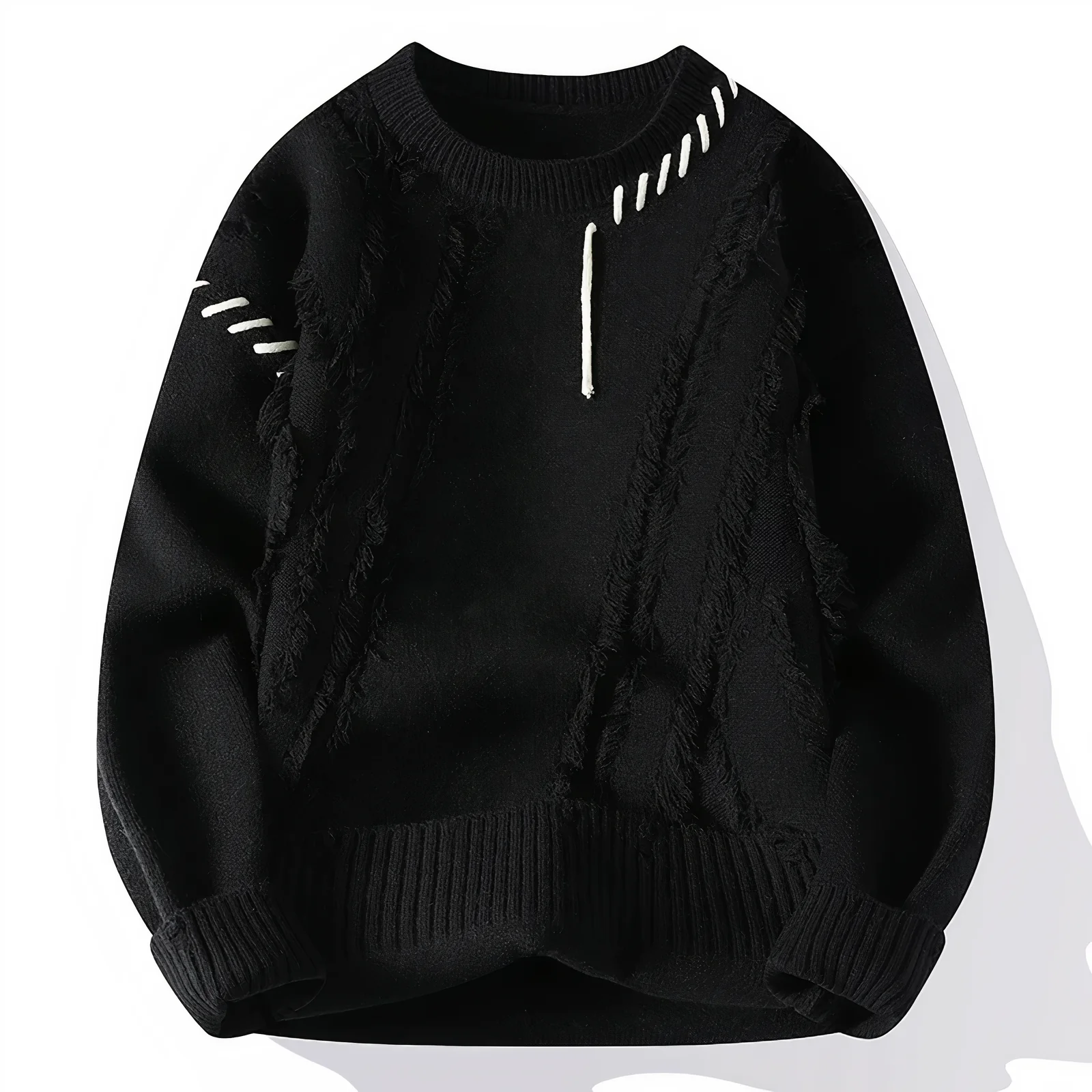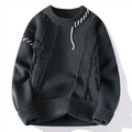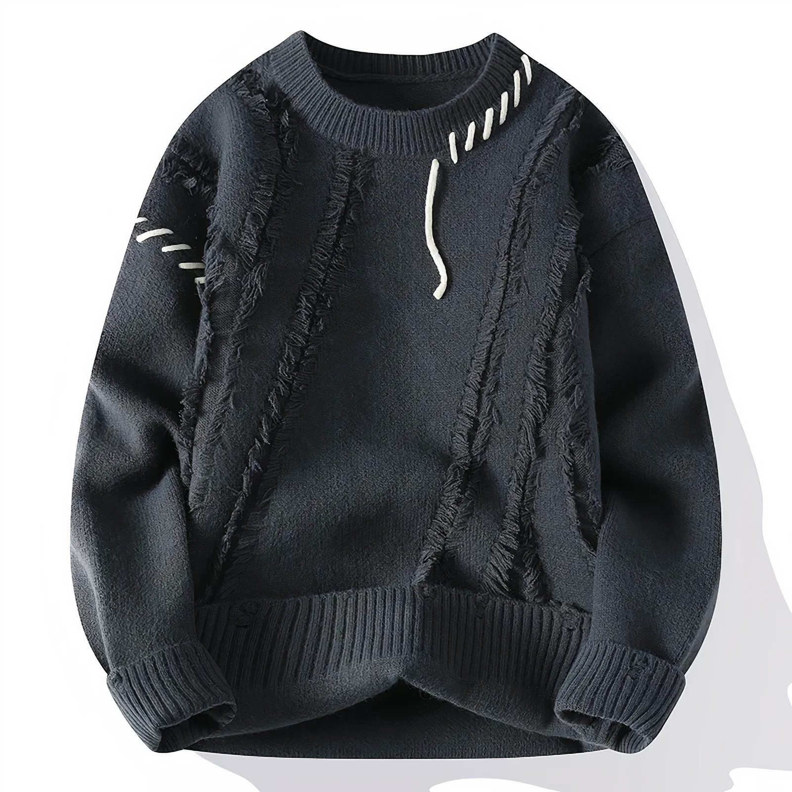 Herr Tröja – Avslappnad Passform – Stickad Patchwork – Fransar – Ribbade Kanter – Avslappnad Stil