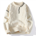 Upptäck Amstel-Mode Stickad Patchworktröja med Fransar, en herrtröja med en avslappnad passform och unikt stickat patchworkmönster. Perfekt för en casual stil, denna bekväma tröja med fransar och ribbstickade kanter är ett måste för varje modern man.