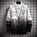 Herr Tröja – Relaxed Passform – Stickad Textur – O-Ringning – Texttryck med Färgövergång