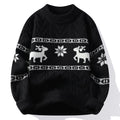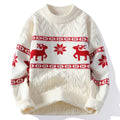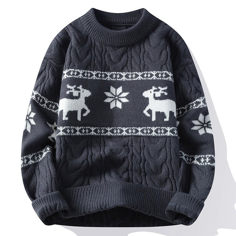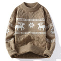 Herr Tröja – Avslappnad Passform – Ullmix – Kabelstickning med Renmönster och Ribbstickade Kanter