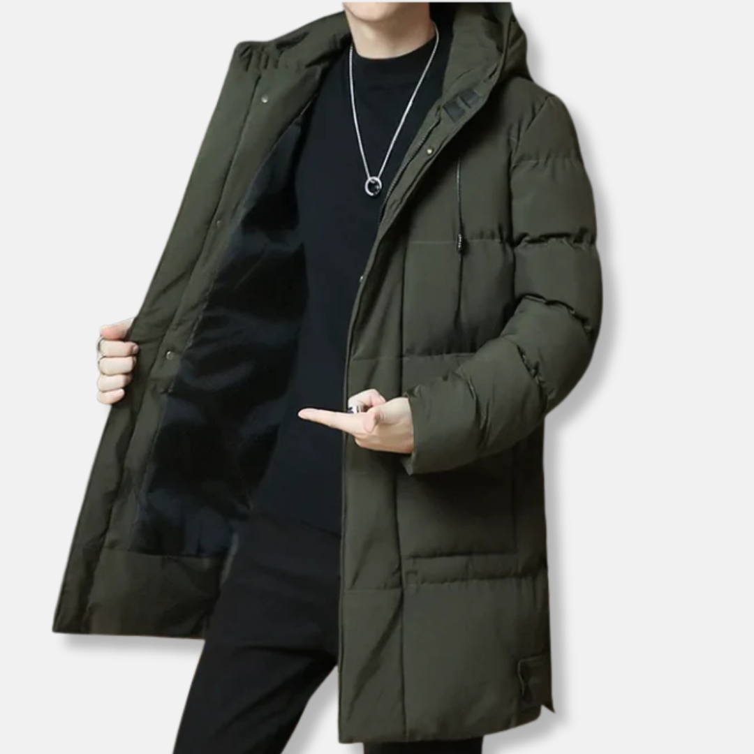 Herr mellanjacka – vadderad bomull – huva – avslappnad passform – varm fodring