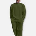 Deze tweedelige set voor heren, vervaardigd uit een katoenmix met een kenmerkend geweven patroon, biedt een ontspannen pasvorm voor dagelijks comfort.