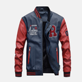 Herr Varsity Baseballjacka – Läder Body – Ribbade Muddar – Tryckknappsstängning – Patchar