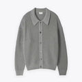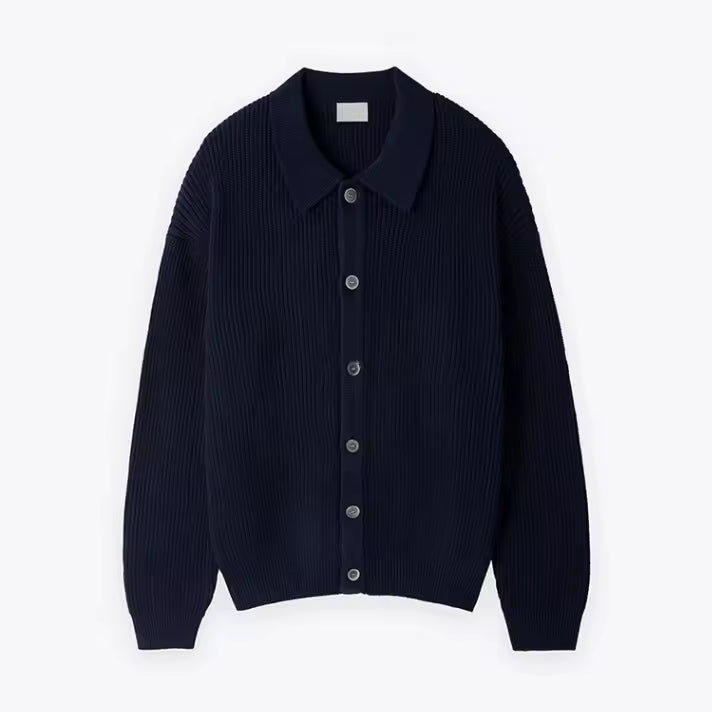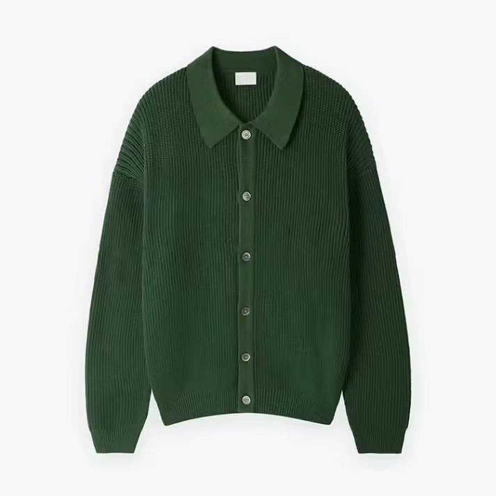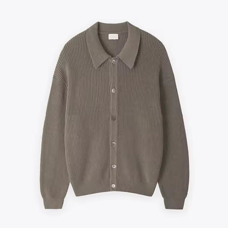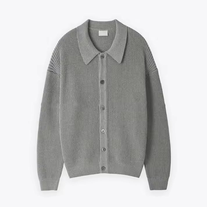 - Ontwerp: Oversized pasvorm met ribstructuur en knoopsluiting