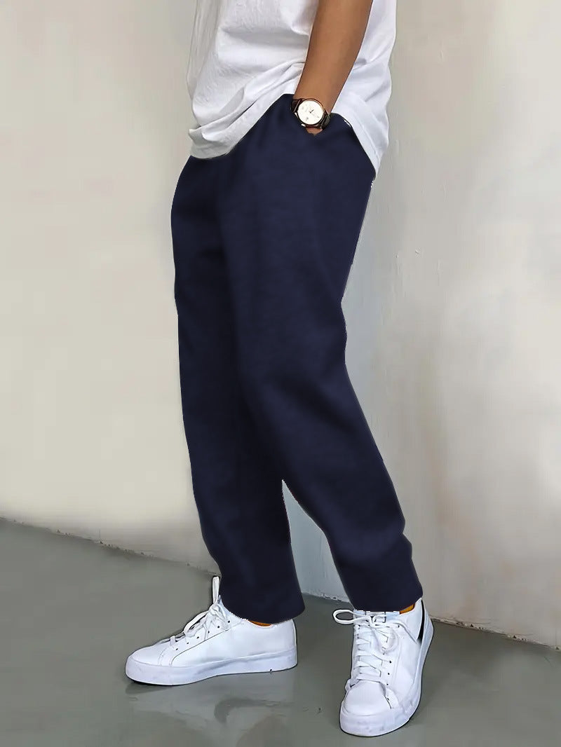 Deze joggingbroek voor heren heeft een relaxte, rechte pasvorm met een elastische tailleband voor dagelijks comfort. Dankzij de steekzakken aan de zijkant is hij praktisch voor zowel loungen als casual streetwear. Perfect voor workouts, boodschappen of om te combineren met een basic T-shirt voor een relaxte look.